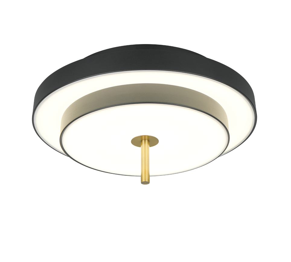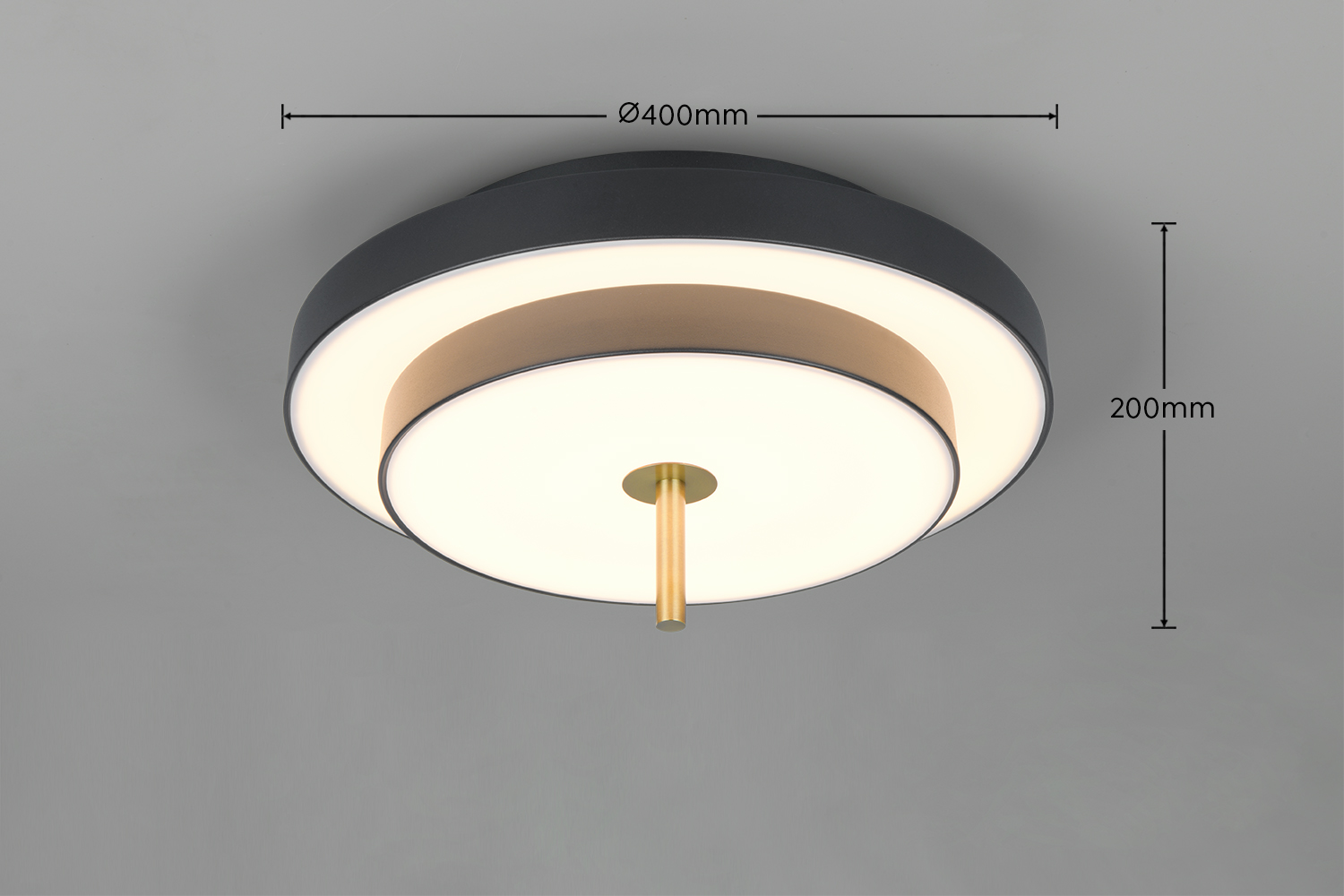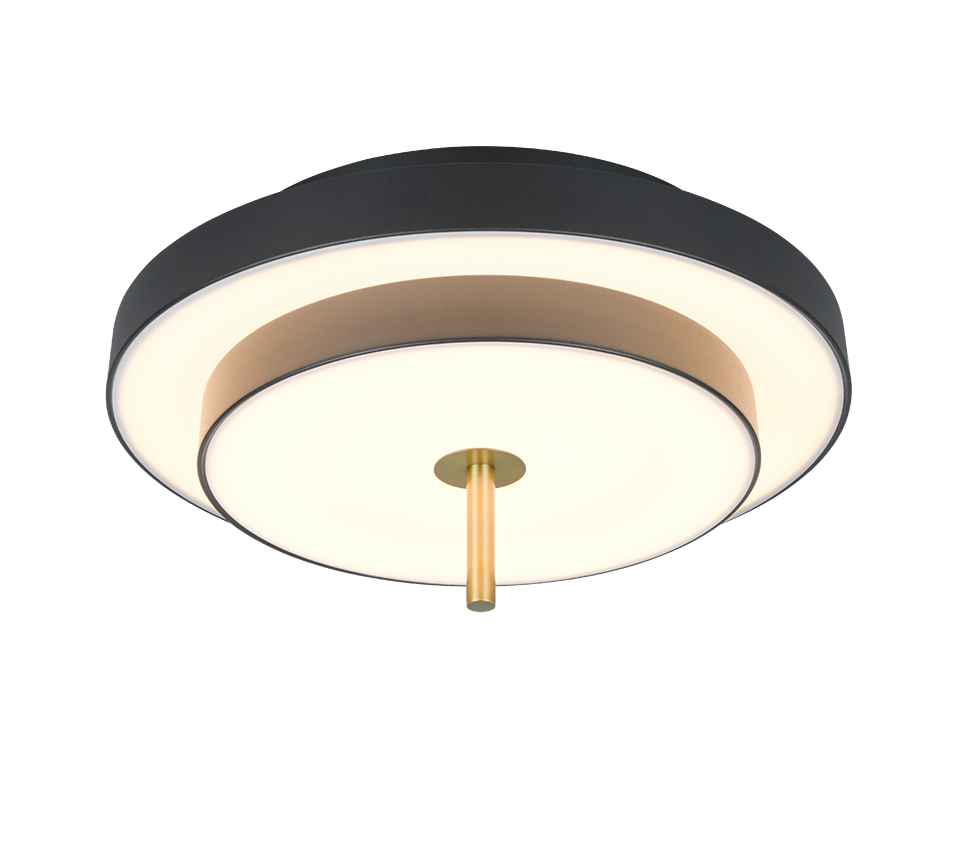 Moderno, purističko, a opet predivno nenametljivo: stropna svjetiljka KEATON impresionira sofisticiranim dizajnom koji podsjeća na nježno sjajne diskove koji se stilski preklapaju. Njen minimalistički izgled dodatno je naglašen mekim tonovima boja - prava stilska izjava za hodnike, dnevne sobe ili spavaće sobe. KEATON ima mnogo toga za ponuditi u smislu tehnologije: Pomoću praktičnog DIP PREKIDAČA izravno na svjetiljci, boja svjetla može se fleksibilno odabrati između toplo bijele, neutralne bijele i hladno bijele - ovisno o raspoloženju koje želite stvoriti. Svjetlina se također može individualno podesiti - jednostavno u tri stupnja pomoću konvencionalnog zidnog prekidača. U elegantnoj shemi boja mat crne i mat mesinga, KEATON se oslanja na uspješnu kombinaciju visokokvalitetnog metala, suptilnog svjetlosnog efekta i suvremene estetike. Osim toga, svjetiljke imaju modernu LED tehnologiju, koja predstavlja visoku kvalitetu svjetlosti. LED izvori svjetlosti karakteriziraju se dugim vijekom trajanja i niskim stvaranjem topline.