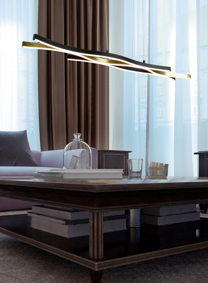 Prekrasan zakrivljeni oblik viseće svjetiljke BLAZE ciljano postavlja scenu za vašu blagovaonicu i ujedno postaje poseban privlačan element iznad blagovaonskog stola. Moderna i elegantna svjetiljka ima SWITCH prigušivač koji omogućuje postupno podešavanje svjetline od 100% do 50% i 25% putem konvencionalnog prekidača za svjetlo. Osim toga, svjetiljka ima prekidač koji omogućuje podešavanje boje svjetla (toplo bijela, neutralna bijela ili dnevno bijela). Dizajn svjetiljke zaokružen je jednostavnom kombinacijom boja mat mesinga i mat crne. Osim toga, svjetiljke imaju modernu LED tehnologiju koja predstavlja visoku kvalitetu svjetlosti. LED izvori svjetlosti karakteriziraju se dugim vijekom trajanja i niskim zagrijavanjem.